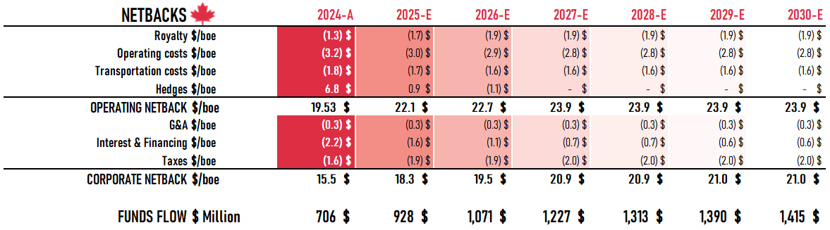 Production growth isn’t something you simply set as a target - it’s a direct result of how much capital is invested and how efficiently it is deployed. In 2024, Peyto achieved an impressive capital efficiency of C$9,700 per flowing boe. For 2025-2027, they are guiding for C$10,500 per flowing boe with approximately C$475M in Capex.